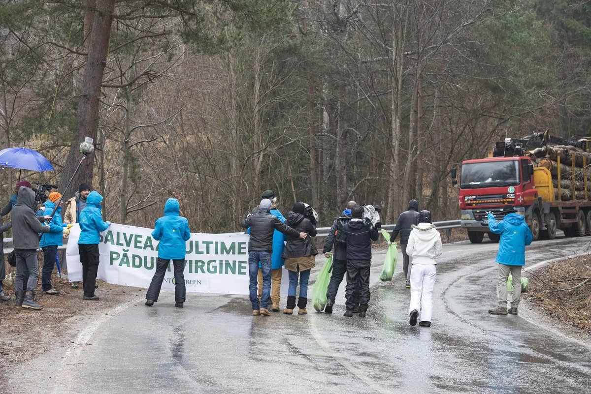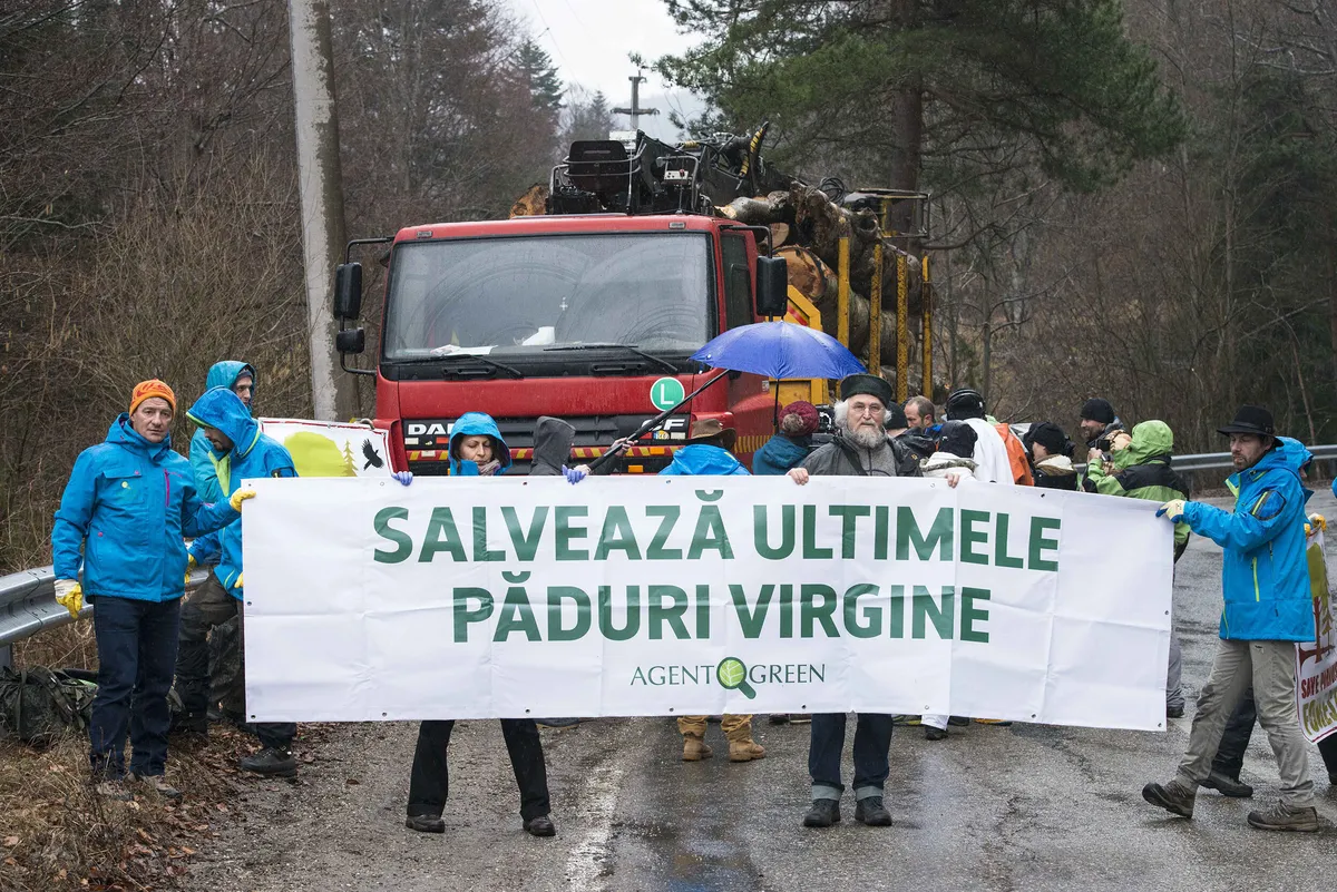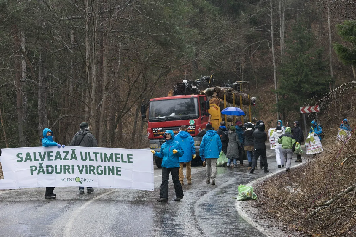 Galerie Media – Agent Green blochează camioanele cu lemne din munții Făgăraș