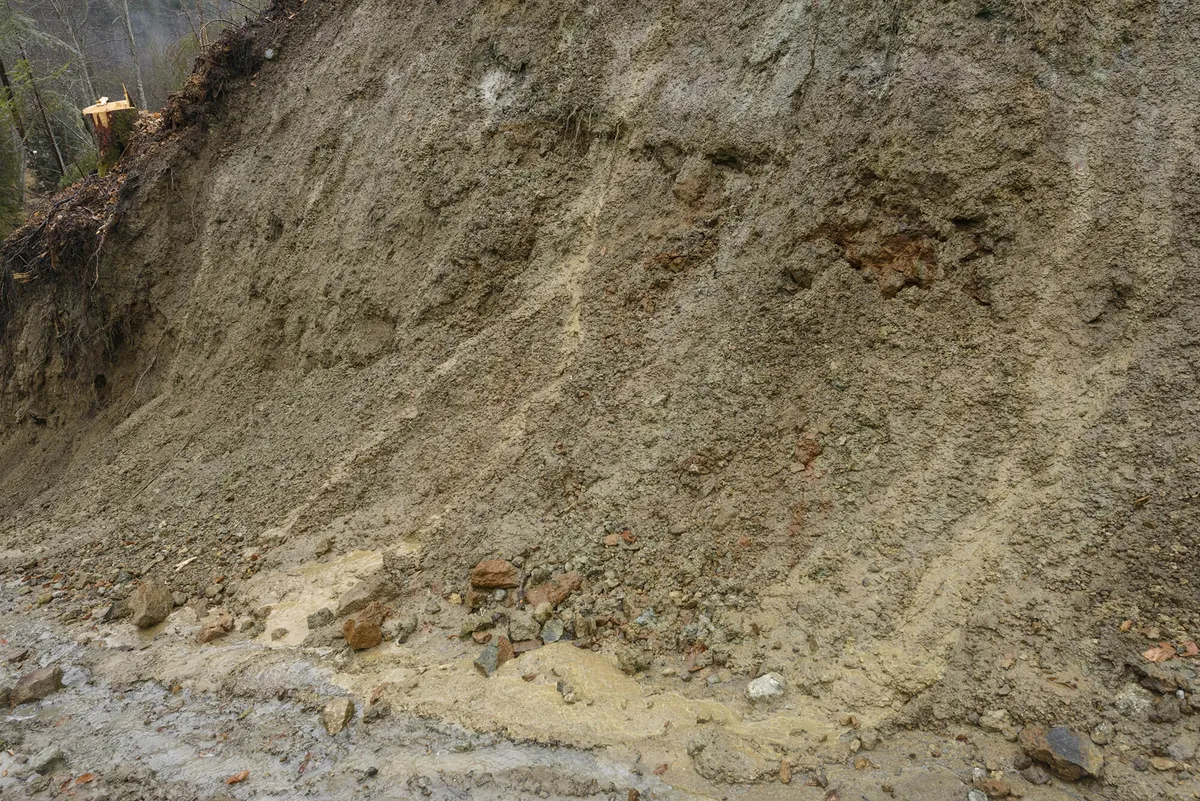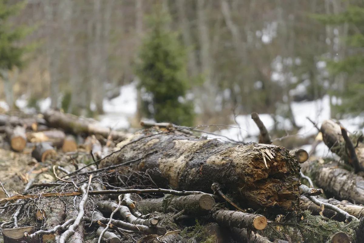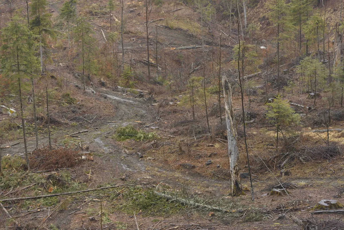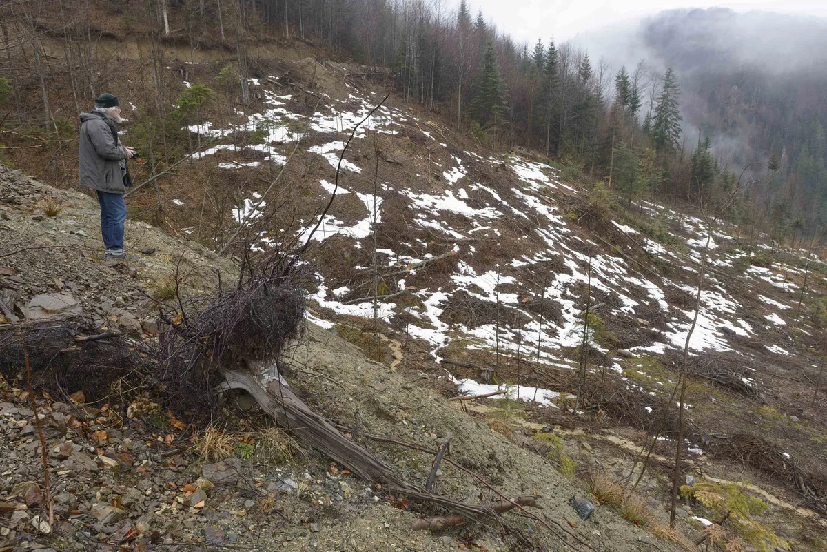 Fagaras Natura 2000 Site, Romania – March 10, 2017: Clearcut close to the site of the protest action by Agent Green and forest protectors (international including scientists and mountaineers) who stopped logging trucks in Fagaras Mountains Natura 2000 site and called on Romanian Government to take action saving Europe’s last large primary forests in Romania.