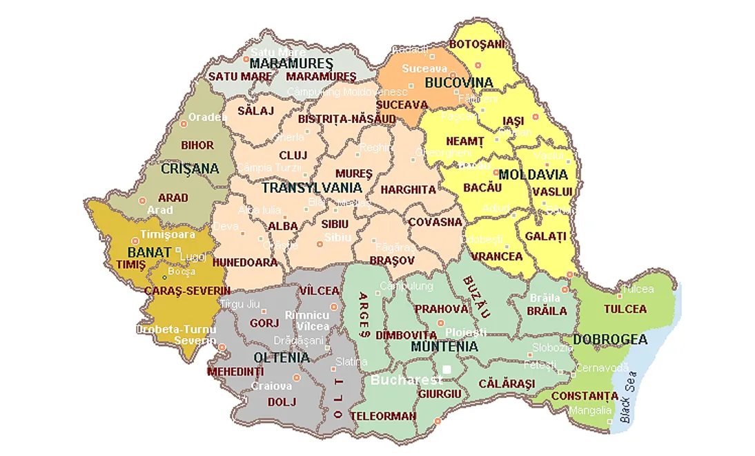 **Figura 3.**Harta din partea superioară este a României, care prezintă regiunea Transilvania. Harta din partea inferioară este preluată din Popescu și colab. 2016, indicând numărul de ani în care ratele de creștere estimate au depășit ratele maxime de creștere ale altor populații europene.