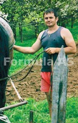 Eu am ajuns târziu: Mircea Aurel împreună cu vecinul său aproape că terminaseră de arat, mai aveau doar o brazdă. Doi oameni arşi de soare şi de vânt ară cu plugul tras de cal, pe sub merii înfloriţi. Îi întreb direct despre luminile şi semnele din munte.
