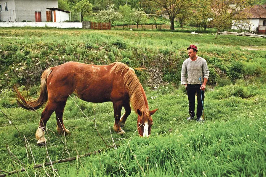 „Am venit să iau caii, că tre să merg să aduc luțernă. Cum să fie viața la noi? Bună! Eu am serviciu, sunt paznic la o fabrică de mobilă. Da nu mă duc zi de zi, și așa pot să țân și eu casa, caii, pământul. Caii îi țân că am vaci și tre să car fânul cu ei. Am zece vaci. Și porci am. Mulți! Țân pentru casă, numa vițeii îi vând. Bine, că acu, de când cu boala asta, nu mai vine nimeni să îi ia. Până s-a găta, că toate au pe lumea asta un sfârșit. Noi ne vedem de treabă, na. Am pământ mult, zilele astea trebuie pus porumbul, cartofii sunt ieșiți, trebuie deja prima sapă. De lucru e, heeeheei! Lucrezi tătă ziua și tăt nu le poți face toate. Da aici măcar ai găini, ai un ou, mai tai, mai faci o zamă, aer curat este, nu e înghesuială, că nu-i multă lume. Avem avantaje mari. Cum să stai în bloc, izolat? Te nărozești de cap! Aici, de bine, de rău, ieși pe deal. Noi ne facem în casă tăt ce avem nevoie. Că și un porc, dacă tai, eu îl fac și salam, și cârnați, nu cumpăr nimic cu chimicale de la magazin. Cam așe…”. Valentin duce mâna la pălărie, mă salută și pleacă grăbit, cu caii, spre treburile lui fără de sfârșit. E și el izolat, dar în muncă, o muncă aprigă, dar care le dă oamenilor rămași în sate un sentiment de învingători.