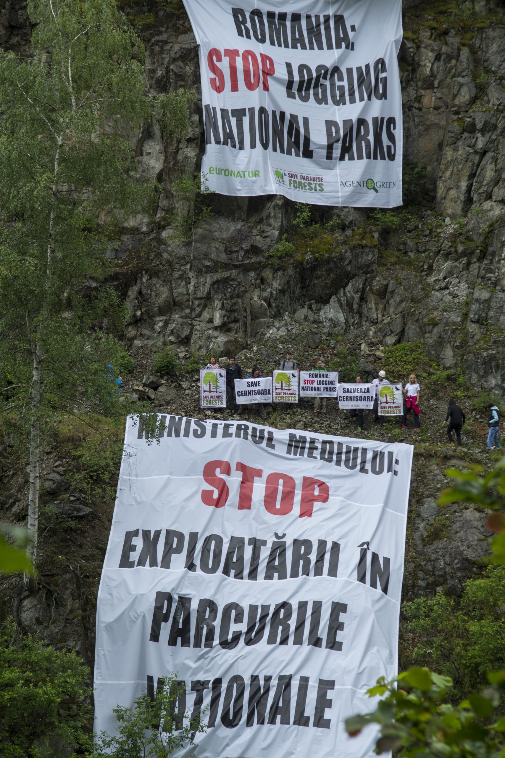 La protestul din luna mai 2018 din Cernișoara participaseră 25 de activiști care au desfășurat peste stâncile din zona Cernișoara 2 bannere uriașe (96 metri pătrați, respectiv 64 mp) cu mesajul ”STOP exploatărilor în parcurile naționale” în limbile română și engleză, adresat Ministerului Mediului, precum și mai multe bannere cu mesajul ”Salvează Cernișoara / Save Cernișoara”. Vezi aici comunicatul de presa din mai 2018: